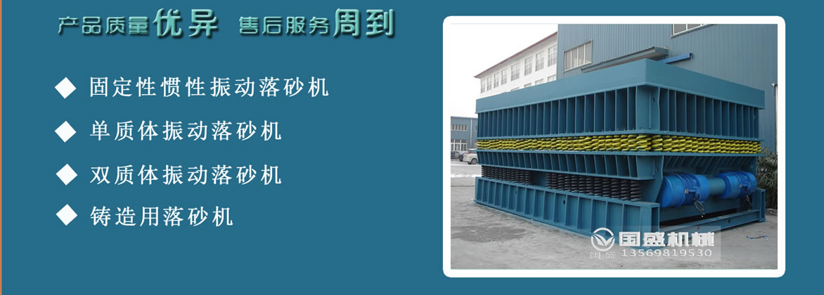 振動落砂機采用先進可靠的雙振動電機自同步和高可靠性耐振的焊接結構和工藝,鑄型在柵格上使型砂與鑄件模具兩者充分分離。型號和尺寸大小可以根據客戶的要求和需求另行設計。